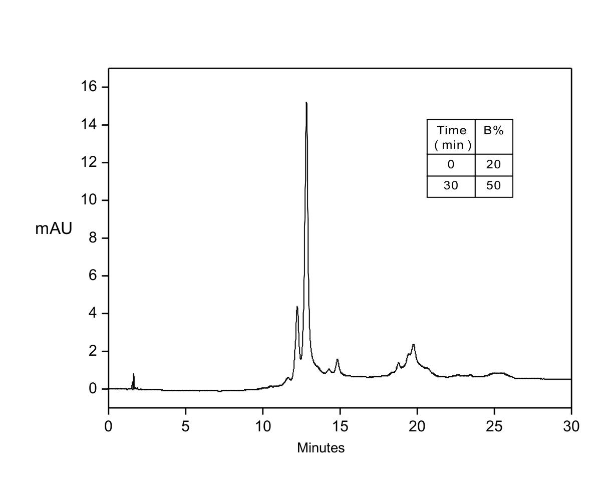 | Mobile phase: | A: 16 mM MES + 10 mM MOPS + 12 mM TAPS + 10 mM CAPSO + 30 mM NaCl, pH 5.2 by NaOH; B: 10 mM MES + 12 mM MOPS + 14 mM TAPS + 16 mM CAPSO + 30 mM NaCl, pH 10.2 by NaOH |