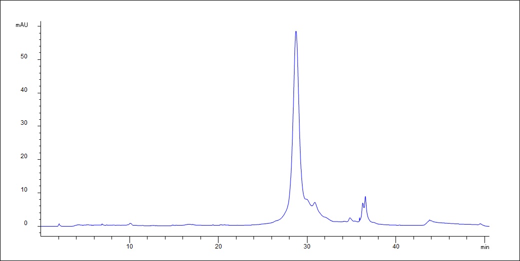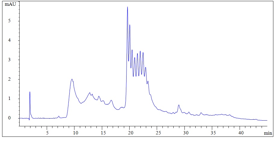 Proteomix CV-1色谱柱是专为双抗分离而设计,具有高分辨率、高柱效、高回收率的特点。填料基质是高交联度、均匀的刚性无孔PS/DVB球形颗粒。无孔填料粒径为5µm。PS/DVB填料表面键合一层高度亲水、纳米级厚度的中性聚合物薄膜。疏水的PS/DVB填料表面被亲水材料完全覆盖,它能够避免PS/DVB对生物分子不可逆吸附,保证了其具有高分离效率和生物样品回收率。