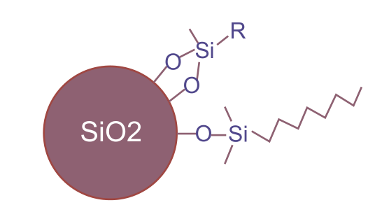 测试方法:将 1g Bio-C8(2)填料、0.2 g 十六烷混合于 5 mL 甲苯中。室温超声处理 10 min。过滤取上清用于 GC 测定。测量浸出物中 C8 单体以及二聚体衍物的含量。